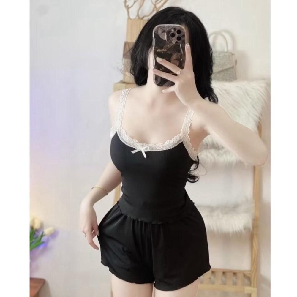 Sét Bộ Ngủ Nữ Áo 2 Dây Ren Kèm Quần Đùi Cuốn Biên Viền – Mã TP24